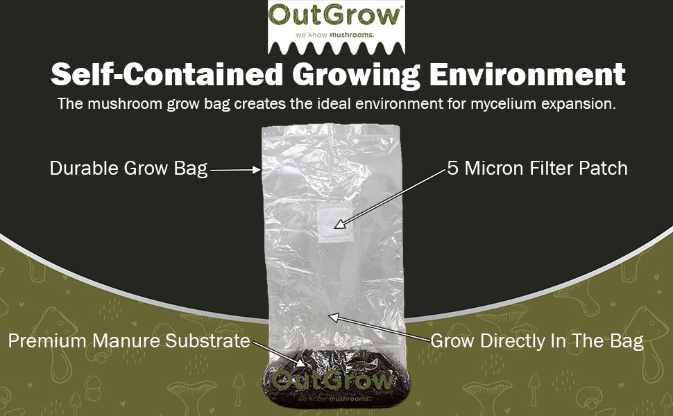 Our manure substrate is pasteurized, sealed in large mushroom grow bags with 0.5 µm filter patches for optimal air exchange and contaminant-free cultivation. Perfect for pairing with sterilized rye grains and our high-quality mushroom grain spawn, this substrate ensures reliable and robust mushroom growth.